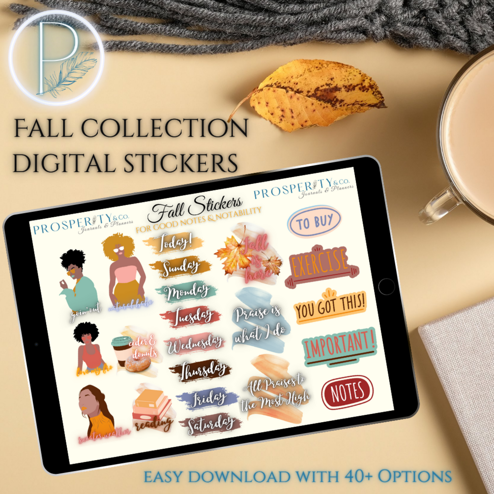 Get into our Prosperity Fall Collection Digital Sticker Collection and watch your organization fall in place! This Collection includes 40+ pre-cropped digital stickers featuring autumn, faith, self-love and more!